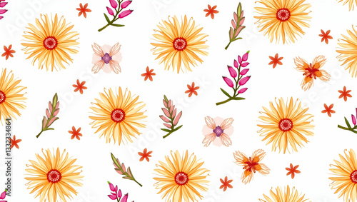 Vibrant Tropical Anemone Seamless Pattern: Exotic Floral Design for Summer Textiles in Vector Style