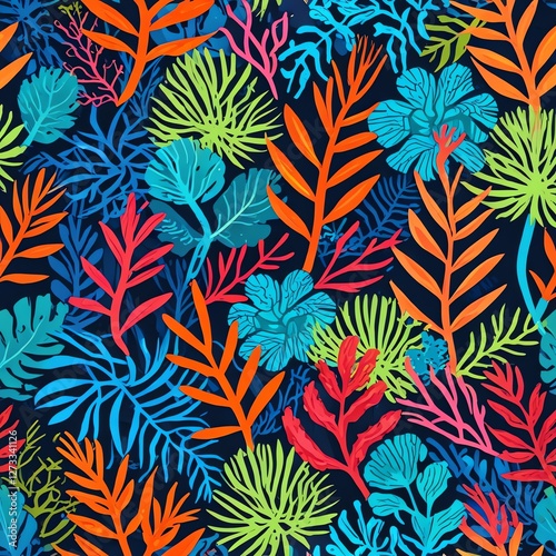 Vibrant Tropical Floral Pattern: A Kaleidoscope of Neon Colors