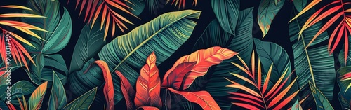 Vibrant Tropical Leaves Pattern With Green and Red Palette