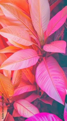 Vibrant Tropical Leaves with Colorful Shades of Pink and Orange