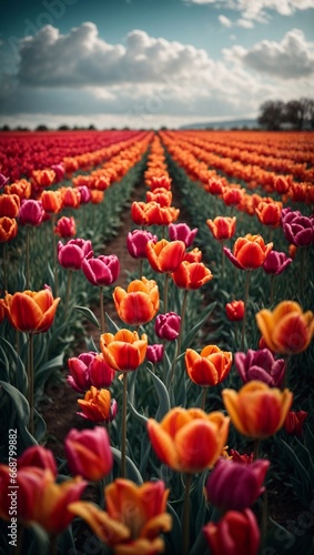 Vibrant Tulip Fields in Full Bloom