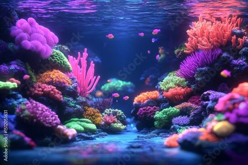 Vibrant Underwater Coral Reef Scene with Colorful Fish and Diverse Marine Life
