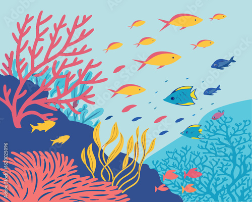 Vibrant Underwater Scene with Multicolored Fish Illustration