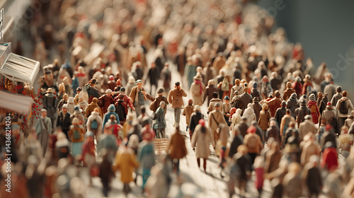 Vibrant Urban Miniature Crowd in a Bustling City Street Diorama Scene