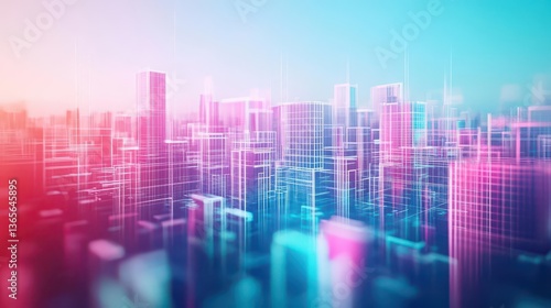 Vibrant Urban Skyline at Twilight with Illuminated Buildings and Dynamic Lines Creating an Energetic and Lively City Atmosphere during Evening Hours
