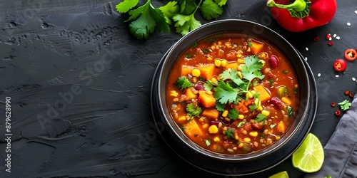 Vibrant Vegan Sweet Potato Tacos Soup with Mouthwatering Photography. Concept Vegan Recipes, Sweet Potato Tacos, Vibrant Photography, Mouthwatering Food, Healthy Eating