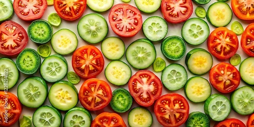 Vibrant Vegetable Salad Pattern: Tomatoes & Cucumbers - Stock Photo