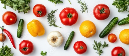 Vibrant Vegetables and Citrus Fruits Flat Lay Photography