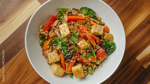 Vibrant Vegetarian Stir-Fry Delight - A Colorful and Healthy Meal in a Dynamic Composition