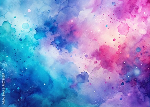 Vibrant watercolor abstract background featuring soft blended hues of blue, purple, and pink, with gentle texture and subtle splatter effects.