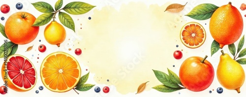 Vibrant watercolor citrus fruits, hand-painted style, illustration, grapefruit