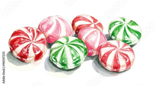 Vibrant Watercolor Illustrations of Peppermint Candies Perfect for Holiday Celebrations and Sweet Treats