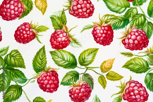 Vibrant Watercolor Raspberry Pattern A Seamless Design of Juicy Raspberries and Lush Green Leaves for Textile, Wallpaper, and More