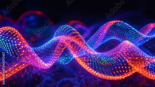 Vibrant waves of color create a mesmerizing visual display. This digital artwork captures the essence of movement and fluidity. Experience the beauty of motion. Generative AI