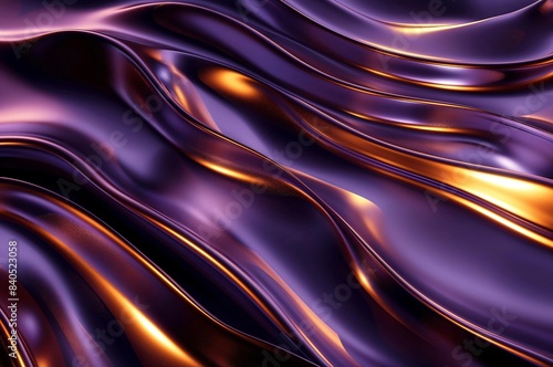 Vibrant Waves of Purple and Gold Light: Abstract Digital Art Design
