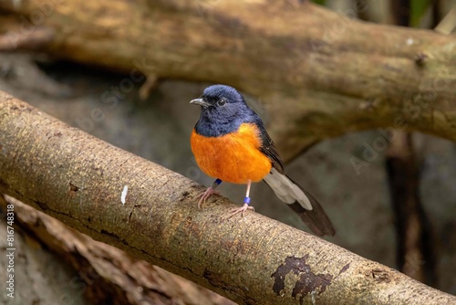 Vibrant White-rumped Shama Thrush (Copsychus malabaricus) perched atop a branch of a tree