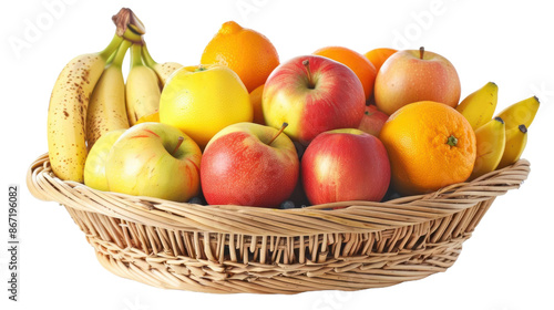Vibrant Wicker Basket of Fresh Assorted Fruits, Including Apples, Bananas, Oranges, and Grapefruits