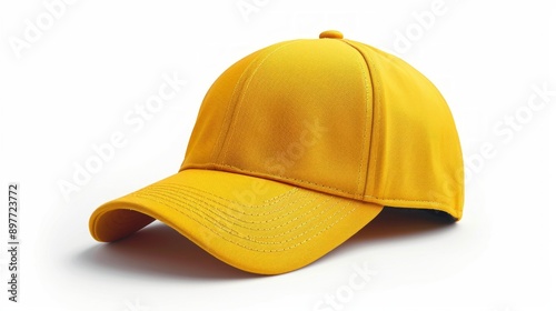 Vibrant yellow baseball cap in pristine condition against a white backdrop. No signs of wear. Bright color pops against stark background