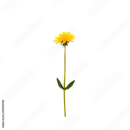 Vibrant Yellow Dandelion Flower with Green Stem on White Background