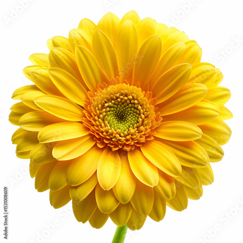 Vibrant Yellow Gerbera Daisy Closeup Isolated White Background