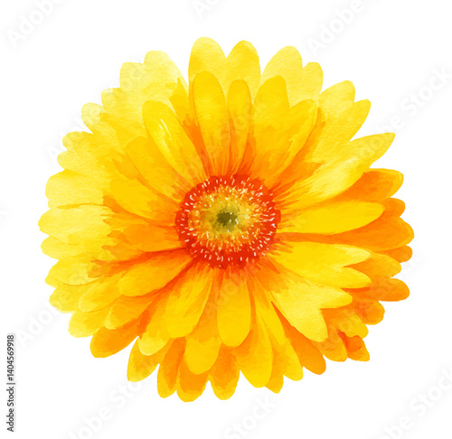 Vibrant Yellow Gerbera Daisy Flower with Watercolor Technique on White Background
