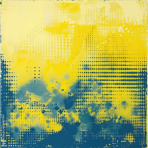 Vibrant yellow hues blend seamlessly with a textured yellow and blue halftone background, adding a touch of contemporary flair to the scene.
