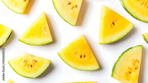 Vibrant Yellow Watermelon Slices with Fresh Appearance on White Background