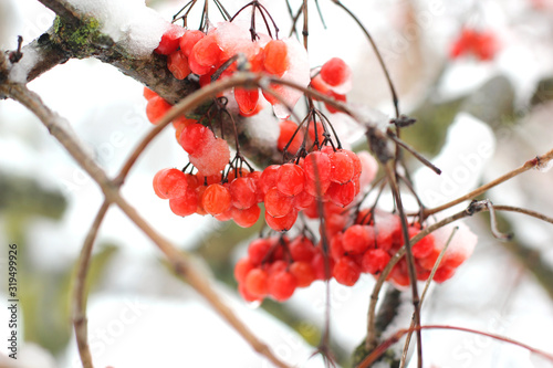 Viburnum In The Snow. Beautiful winter