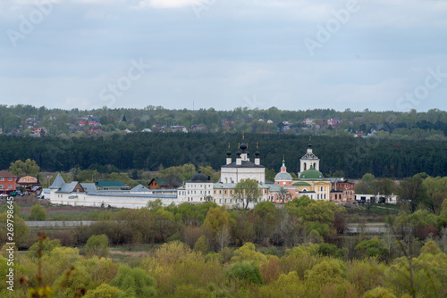 Вид на Троицкий Белопесоцкий монастырь со смотровой Каширы.