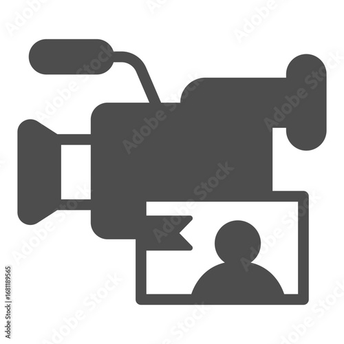 Video camera and video frame with person solid icon, info tech concept. Vector graphics. Camera with user pic, technology sign on white background, outline style icon of mobile or web design.