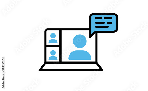 Video conference icon. People on computer screen. Home office in quarantine times. Internet virtual teaching media. Digital communication