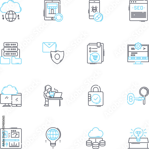 Video editing linear icons set. Cuts, Effects, Transitions, Timeline, Audio, Motion, Footage line vector and concept signs. Render,Clipping,Montage outline illustrations