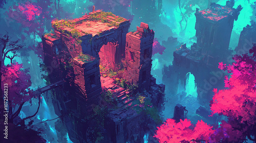 Video game scene set in a fantasy arena with intricate, medieval-style architecture, Generative AI
