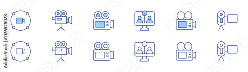 Video icon set in two styles, Duotone and Thin Line style. Editable stroke. video call, video camera.-1