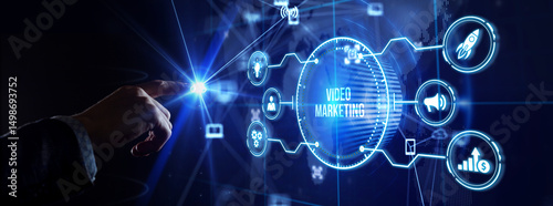 Video marketing and advertising concept on screen. Business, Technology, Internet and network concept.