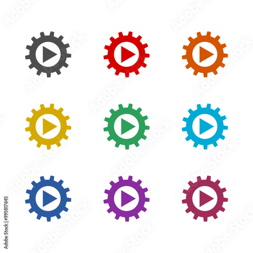 Video marketing icon. Video settings icon isolated on white background. Set icons colorful
