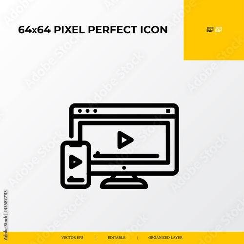 Video On web icon. web design and development 64x64 pixel perfect icon