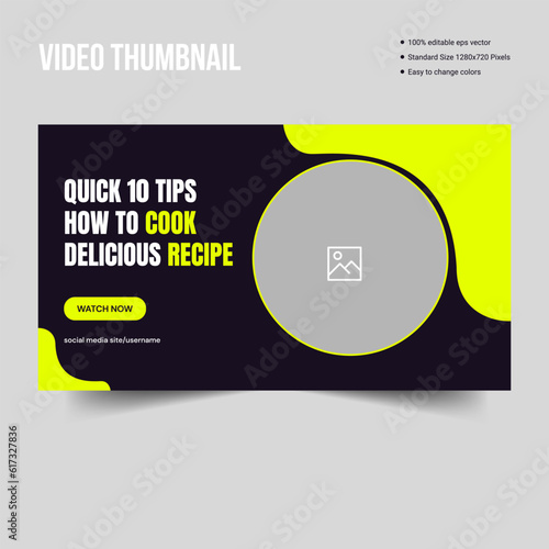 Video thumbnail design for youtube channel, food recipe tips video thumbnail design template, vector eps 10 file format
