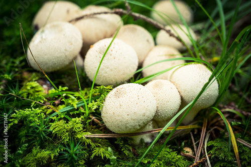 Viele weiße Stäublinge auf dem Waldboden