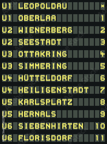 Vienna "U-Bahn" subway stations display, all different metro stations end/beginning stations listed