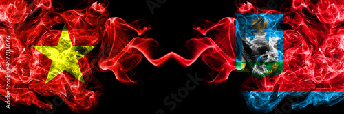 Vietnam, Vietnamese vs Russia, Russian, Oryol Oblast smoke flags side by side.