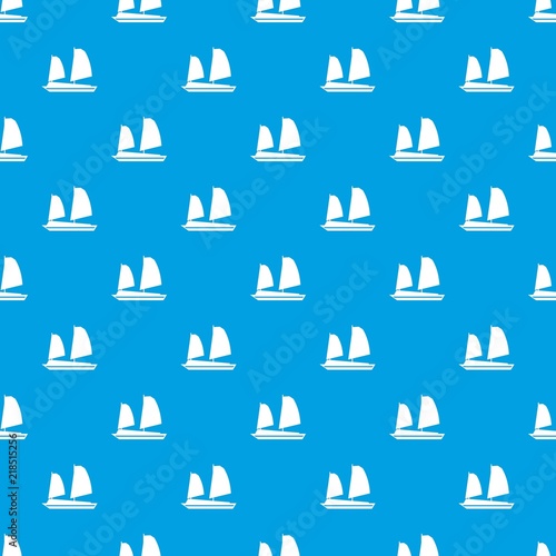 Vietnamese junk boat pattern repeat seamless in blue color for any design. Vector geometric illustration