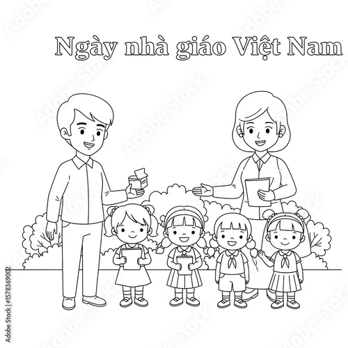 Vietnamese teachers day celebration with teachers and students isolated on transparent background