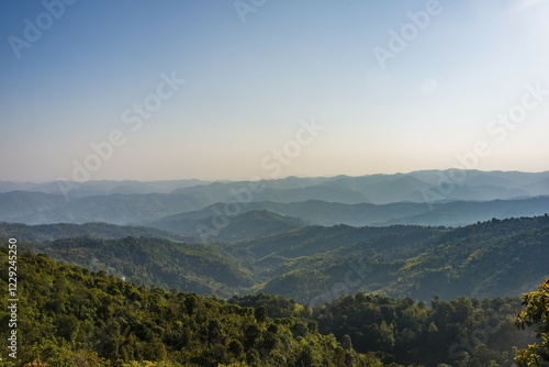 View across wooded mountains, Kyaukme, Shan State, Myanmar, Asia