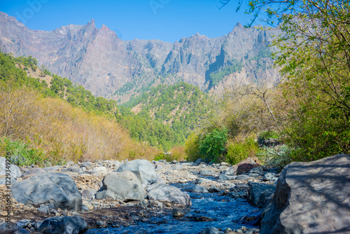 View at Barranco de las Angustias and Caldera de Taburiente on La Palma, Canary Islands, Spain