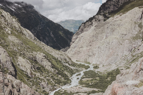 View closeup river scenes in mountains, national park Switzerland, Europe