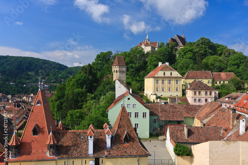 View from athe clocktower in the meideval city of sighisoara, Romania