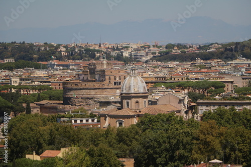 View from Terrazza del Gianicolo to the historic center of Rome, Italy