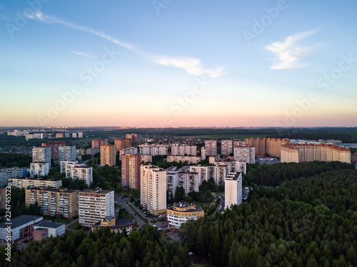 View from the high on Polkovnika Militsii Kurochkina street and Mikroraion V district of Troitsk city in Russia