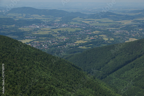 View from the observation tower on canopy walk "Stezka Valaska" in Pustevny in Czech republic